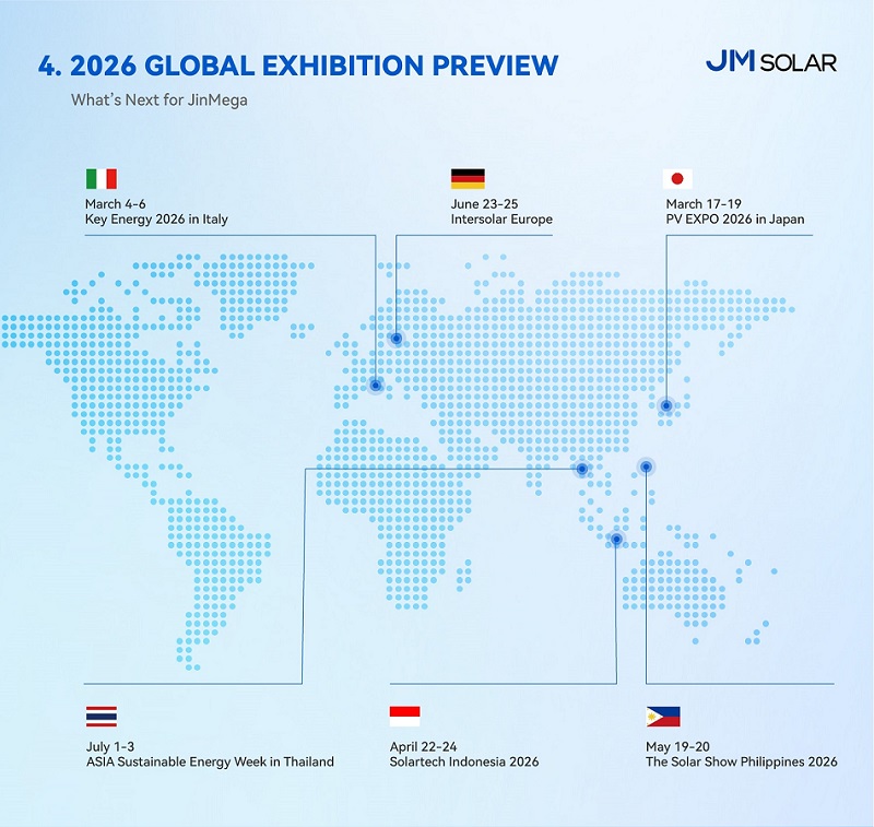 これらのプラットフォームを通じて、JinMegaは連携を強化し、実際のプロジェクトから得た実践的な経験を共有し、世界中で効率的かつ持続可能な太陽光発電の導入を支援するソリューションをさらに改良することを目指しています。イノベーションと信頼性を核に、自信と勢いを持って2026年を見据えています。