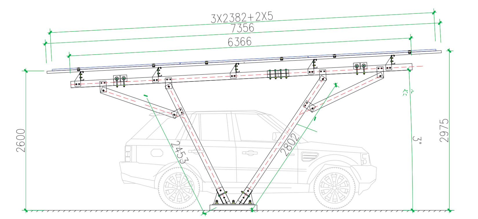 JM Solar アルミニウム PV カーポート太陽光発電設置システム 高強度アルミニウムとSUS304を使用しており、構造安定性が高く、取付作業が容易です。 インストール。必要に応じて、防水カーポートなどのカスタマイズされたソリューションも利用できます。このシステムは、以下を組み合わせて、 太陽光発電とカーポートは、車を風雨よけだけでなく日差しよけにするなど、多目的に利用できます。 発電するように。地域、会社、工場、商店街などの駐車場での使用に適しています。     安定した: AL6005-T5とSUS304素材を使用しており、丈夫で腐食に強く、大雪や台風にも耐えます。 効率的:シンプルな構造により部品点数が削減され、施工率が向上し、施工時間が短縮されます。 フレキシブル:オプションで防水アップグレードとスタンディングシーム金属屋根コンポーネントの追加が可能な多目的カーポートです。カスタマイズされたデザインも利用可能